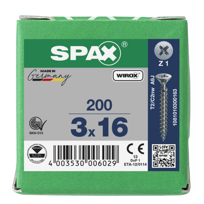 Spax spaanplaatschroeven PZ1 verzinkt 3 x 16 mm voldraad 200 stuks
