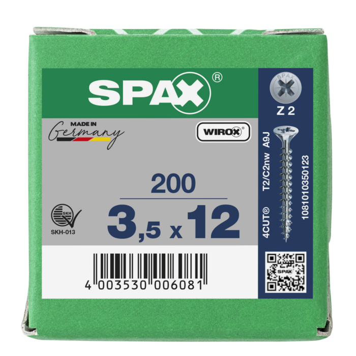 Spax spaanplaatschroeven PZ2 verzinkt 3.5 x 12 mm voldraad 200 stuks