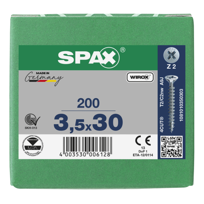 Spax spaanplaatschroeven PZ2 verzinkt 3.5 x 30 mm voldraad 200 stuks