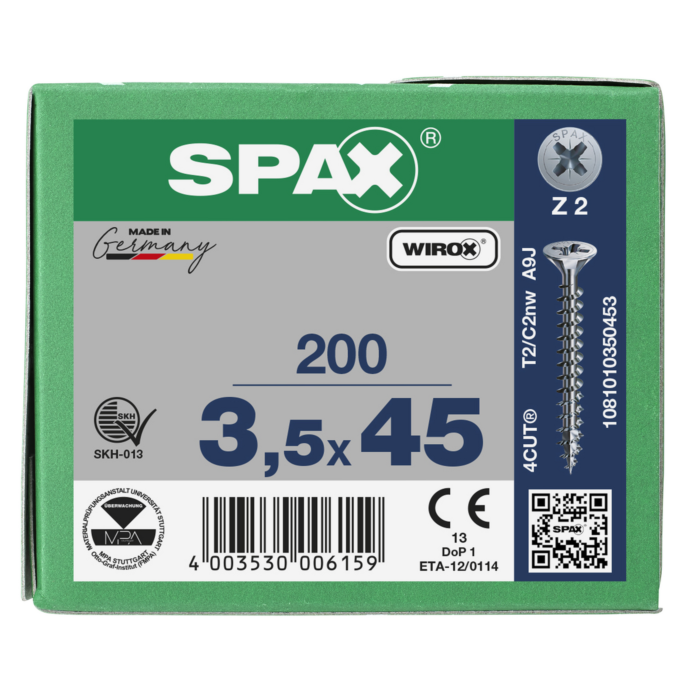 Spax spaanplaatschroeven PZ2 verzinkt 3.5 x 45 mm voldraad 200 stuks
