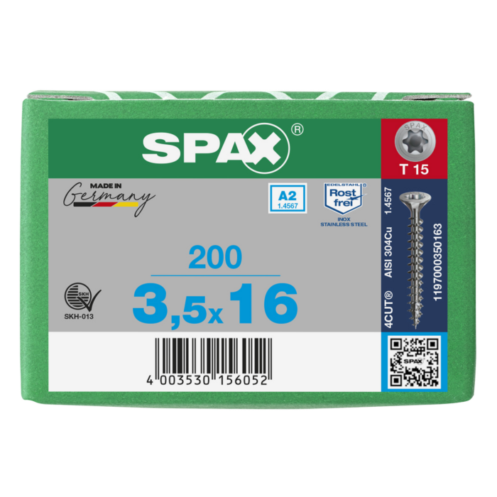 Spax spaanplaatschroeven T15 RVS A2 3.5 x 16 mm mm voldraad 200 stuks
