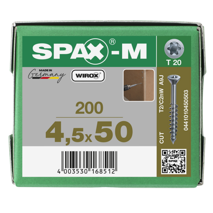 Spax spaanplaatschroeven T20 met boorpunt verzinkt 4.5 x 50 mm deeldraad 200 stuks